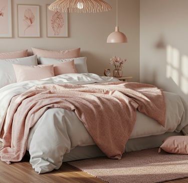 Blush bedding sets the tone for a serene and inviting bedroom. A duvet cover in soft pink pairs effortlessly with crisp white sheets or natural linen tones, creating a calm, elevated look.