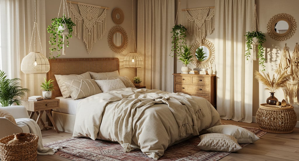 Create a serene retreat filled with natural textures, calming tones, and artistic details. Boho-inspired bedroom styling is all about balance — combining neutral layers, woven accents, and soft lighting to evoke warmth and creativity. From cozy textiles to handcrafted macrame and dreamy canopy drapes, these finds will help you design a space that feels effortless yet inviting.