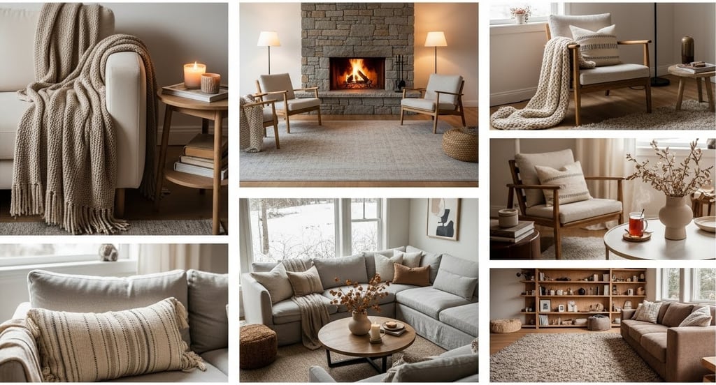 Cozy living rooms almost always include layers of texture. Soft textiles add warmth, depth, and that lived-in feeling that makes a space feel comfortable.