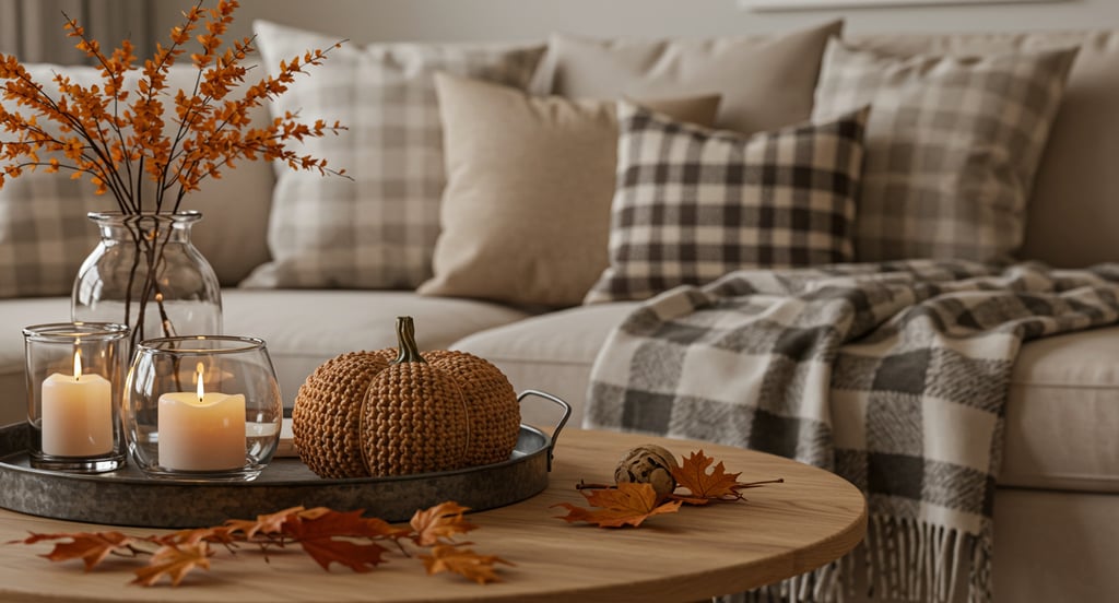 Add seasonal warmth with farmhouse-inspired fall decor. Think rustic pumpkins, cozy plaid blankets, and wood accents that make your home feel inviting.