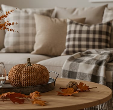 Farmhouse Crochet Pumpkins – Soft and textured pumpkins that pair beautifully with greenery and wooden accents.