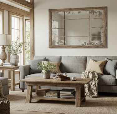 Rustic farmhouse wall décor is all about combining charm, texture, and warmth. From oversized distressed windowpanes to unique natural wood accents, these pieces can instantly transform your walls into a cozy, welcoming backdrop for your home. Whether you lean toward timeless classics like wagon wheels and mirrors or prefer organic touches like live-edge wood, these décor ideas will help you capture the heart of farmhouse living.